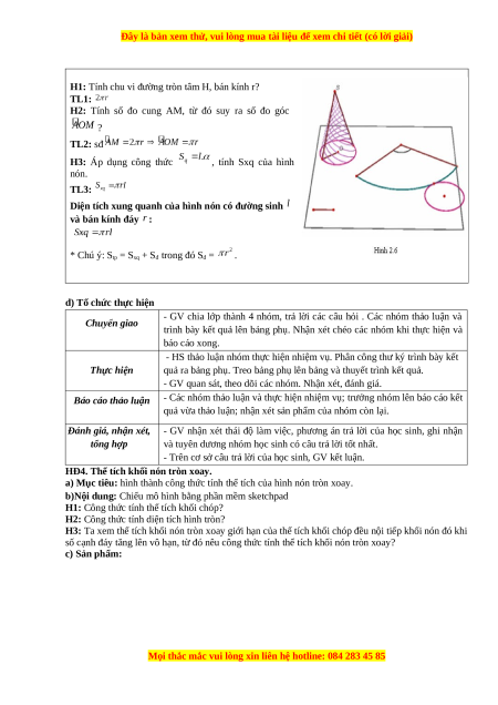 - HS thảo luận nhóm để tìm hiểu công thức tính diện tích xung quanh của hình nón. c) Sản phẩm:
