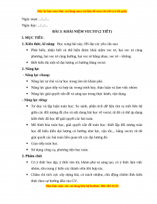 BÀI 3: KHÁI NIỆM VECTƠ (2 TIẾT) I. MỤC TIÊU: