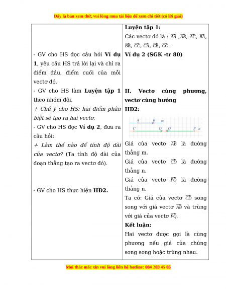 vectơ cùng phương, cùng hướng, ngược hướng. b) Nội dung: