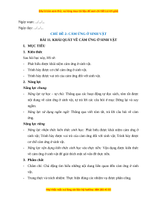 sinh vật; Trình bày được vai trò của cảm ứng đối với sinh vật; Trình bày được