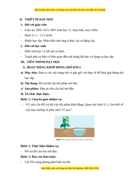 - Giáo án, SHS, SGV, SBT sinh học 11, máy tính, máy chiếu. - Hình 11.1 – 11.3 SGK.