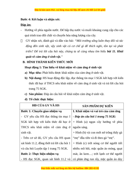 thức đã học ở THCS nêu khái niệm về cảm ứng ở sinh vật và trả lời câu hỏi trang 75 SGK.