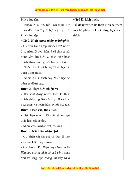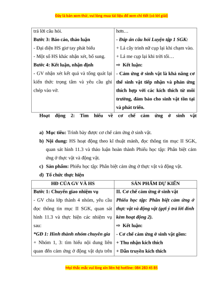 c) Sản phẩm: Phiếu học tập: Phân biệt cảm ứng ở thực vật và động vật.
