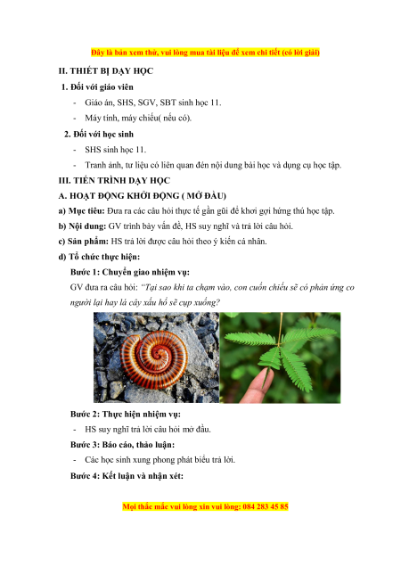 Đây là bản xem thử, vui lòng mua tài liệu để xem chi tiết (có lời giải) II. THIẾT BỊ DẠY HỌC 1. Đối với giáo viên