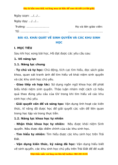 BÀI 43. KHÁI QUÁT VỀ SINH QUYỂN VÀ CÁC KHU SINH HỌC I. MỤC TIÊU