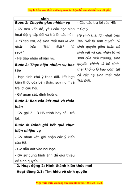 - Nêu được khái niệm sinh quyển và các thành phần cấu trúc của sinh quyển. b) Nội dung: