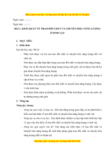 BÀI 1. KHÁI QUÁT VỀ TRAO ĐỔI CHẤT VÀ CHUYỂN HÓA NĂNG LƯỢNG Ở SINH VẬT I. MỤC TIÊU 1. Kiến thức Sau bài học này, HS sẽ: