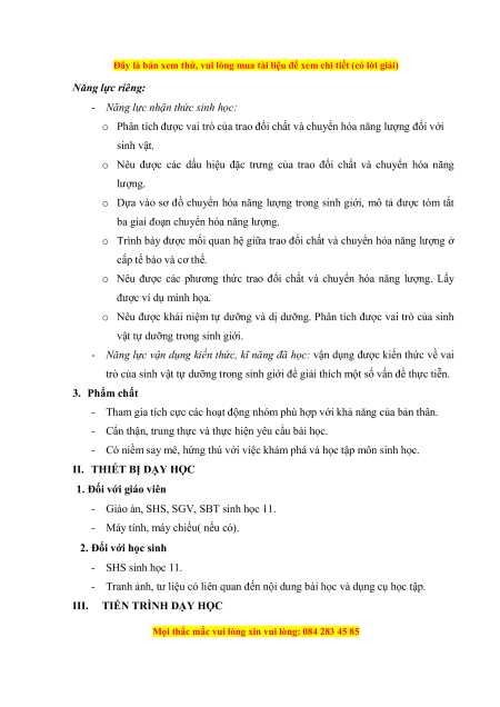 - Năng lực giải quyết vấn đề: Vận dụng các kiến thức về trao đổi chất và