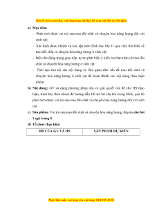 - Trình bày được mối quan hệ giữa trao đổi chất và chuyển hóa năng lượng ở
