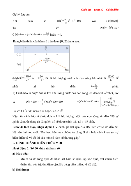 Giáo án Khảo sát sự biến thiên và vẽ đồ thị của hàm số Toán 12 Cánh diều
