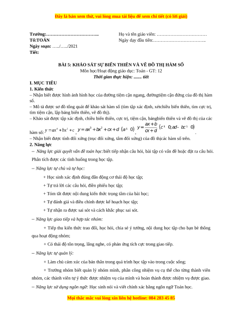 BÀI 5: KHẢO SÁT SỰ BIẾN THIÊN VÀ VẼ ĐỒ THỊ HÀM SỐ