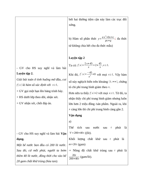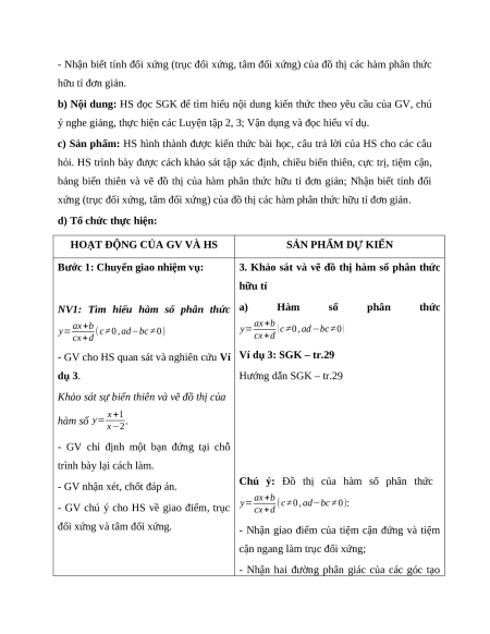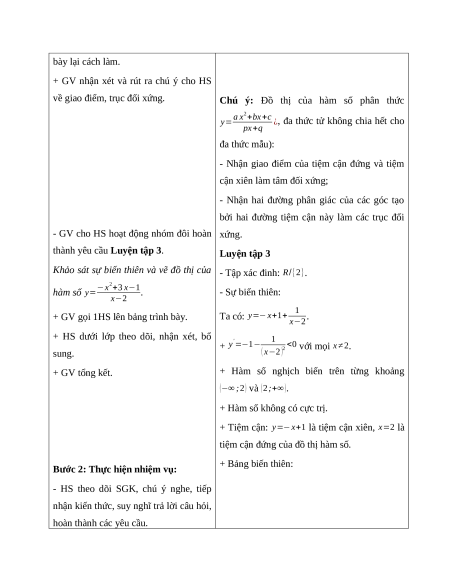 tay, lập bảng biến thiên, vẽ đồ thị và các đường tiệm cận của đồ thị hàm số. 3. Phẩm chất