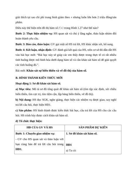 tình huống được mô hình hóa dưới dạng hàm số và cần khảo sát hàm số để giải quyết các tình huống đó.”.