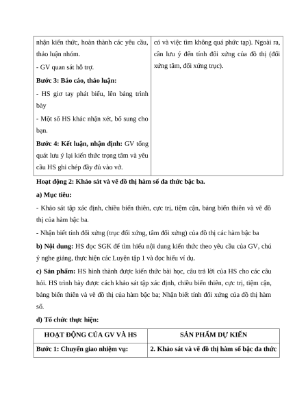 Giáo án Khảo sát sự biến thiên và vẽ đồ thị của hàm số Toán 12 Kết nối tri thức