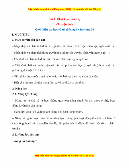 Giới thiệu bài học và tri thức ngữ văn trang 56 I. MỤC TIÊU