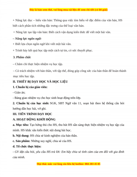 2. Chuẩn bị của học sinh: SGK, SBT Ngữ văn 11, soạn bài theo hệ thống câu hỏi