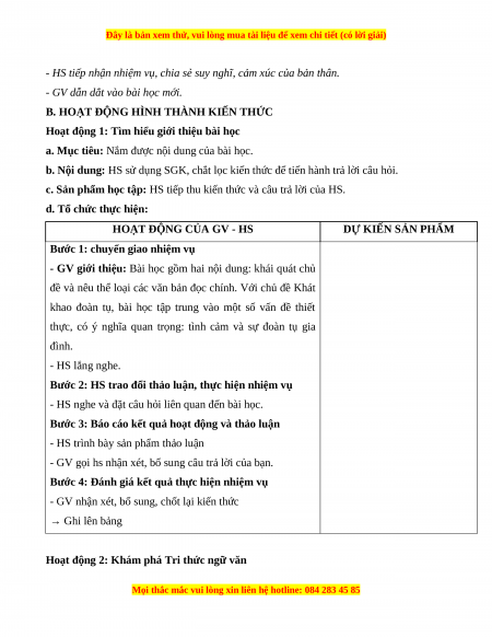 Hoạt động 2: Khám phá Tri thức ngữ văn