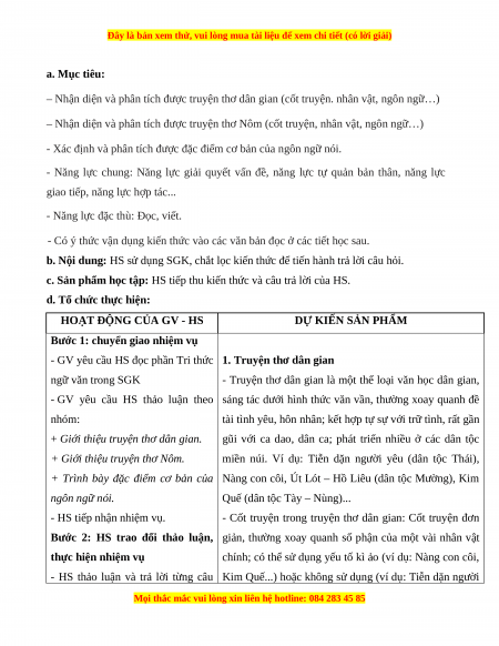 – Nhận diện và phân tích được truyện thơ dân gian (cốt truyện. nhân vật, ngôn ngữ…)