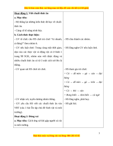 - Củng cố kĩ năng trình bày, chia sẻ thông tin, phân tích vấn đề và xử lí tình huống. 3. Phẩm chất: