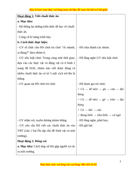 a. Mục tiêu: Cách ứng xử khi gặp người xả rác ra môi trường. 3