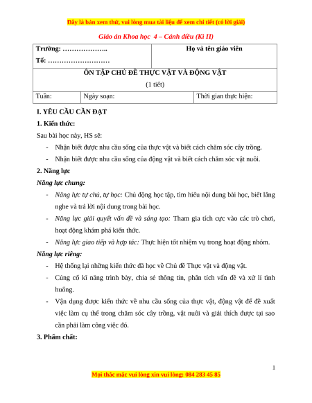 Bộ giáo án Khoa học lớp 4 Cánh diều được cập nhật liên tục trong gói này từ nay đến hết tháng 3/2024.