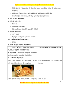 - Nhận biết được nhu cầu sống của động vật và biết cách chăm sóc vật nuôi. 2. Năng lực