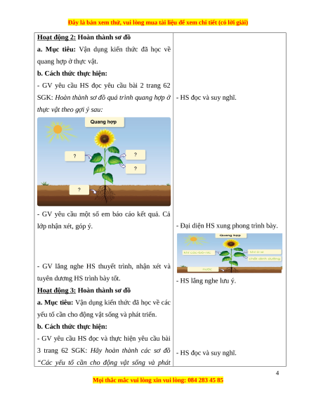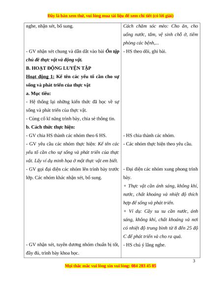 - Nhận biết được nhu cầu sống của thực vật và biết cách chăm sóc cây trồng.
