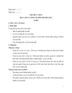 BÀI 1: ĐẤT VÀ BẢO VỆ MÔI TRƯỜNG ĐẤT (4 tiết) I. YÊU CẦU CẦN ĐẠT 1. Kiến thức: