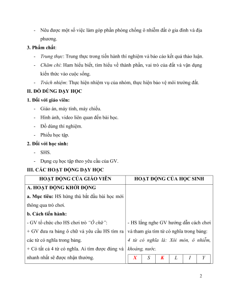 - Trách nhiệm: Thực hiện nhiệm vụ của nhóm, thực hiện bảo vệ môi trường đất. II. ĐỒ DÙNG DẠY HỌC