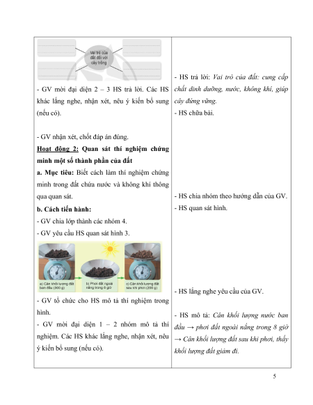 hình ảnh, nội dung để phát hiện ra thành phần, vai trò của đất.