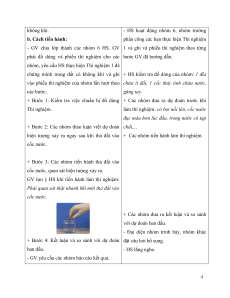 phát đồ dùng và phiếu thí nghiệm cho các bước GV đã hướng dẫn.