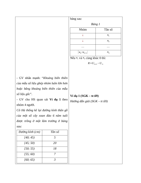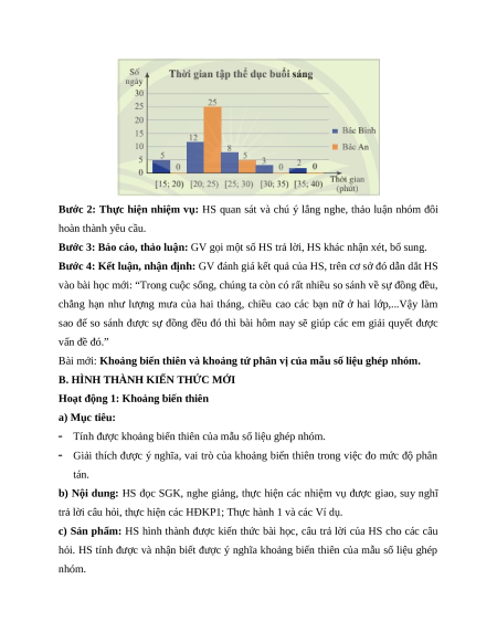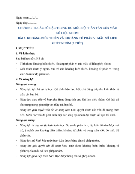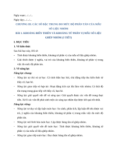 BÀI 1. KHOẢNG BIẾN THIÊN VÀ KHOẢNG TỨ PHÂN VỊ MẪU SỐ LIỆU GHÉP NHÓM (3 TIẾT) I. MỤC TIÊU 1. Về kiến thức Sau bài học này, HS sẽ: