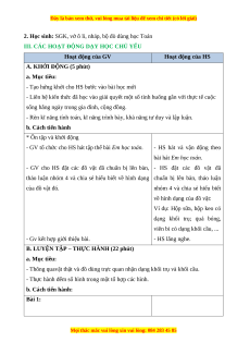 - Rèn kĩ năng tính toán, kĩ năng trình bày, khả năng tư duy và lập luận. b. Cách tiến hành * Ôn tập và khởi động