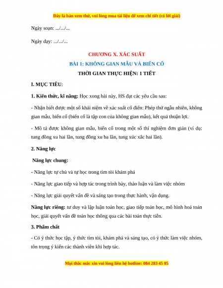 Ngày soạn: .../.../... Ngày dạy: .../.../... CHƯƠNG X. XÁC SUẤT