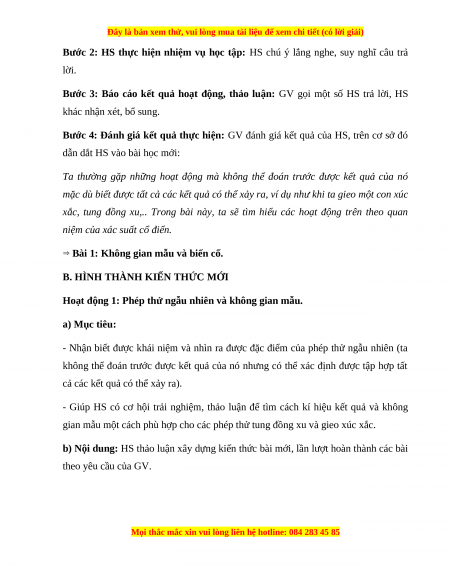 BÀI 1: KHÔNG GIAN MẪU VÀ BIẾN CỐ