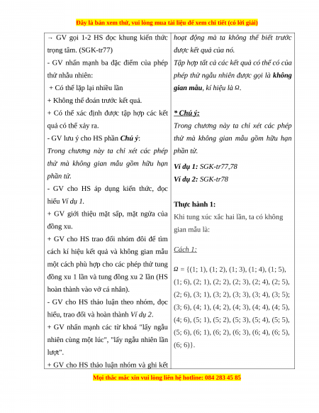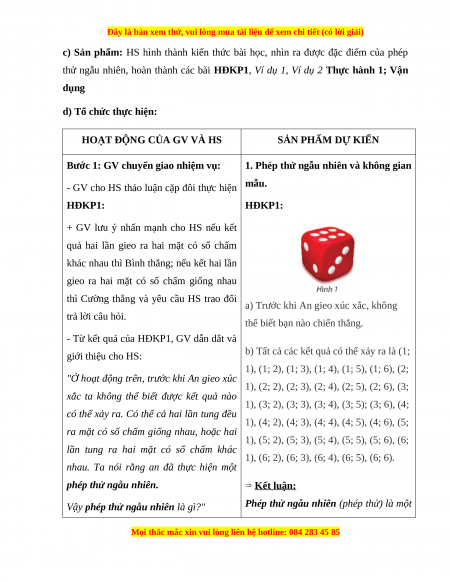 Giáo án Không gian mẫu và biến cố Toán 10 Chân trời sáng tạo