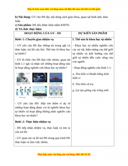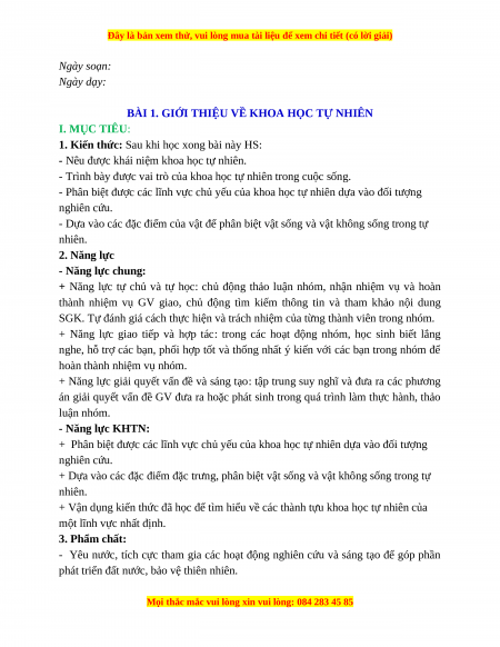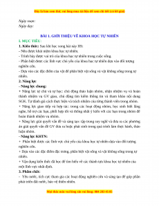BÀI 1. GIỚI THIỆU VỀ KHOA HỌC TỰ NHIÊN I. MỤC TIÊU: