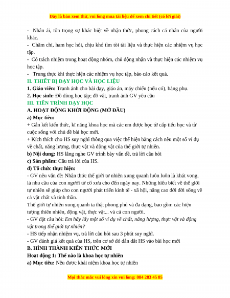 Bộ giáo án Khoa học tự nhiên 6 Cánh diều đã cập nhật đủ Cả năm.
