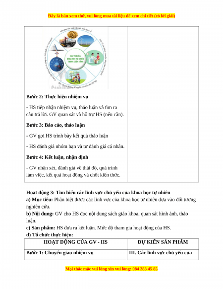 - Phân biệt được các lĩnh vực chủ yếu của khoa học tự nhiên dựa vào đối tượng nghiên cứu.