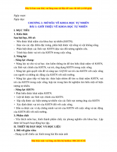 BÀI 1: GIỚI THIỆU VỀ KHOA HỌC TỰ NHIÊN I. MỤC TIÊU 1. Kiến thức Sau bài học, HS sẽ: