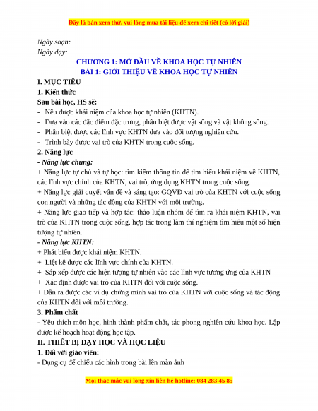 CHƯƠNG 1: MỞ ĐẦU VỀ KHOA HỌC TỰ NHIÊN