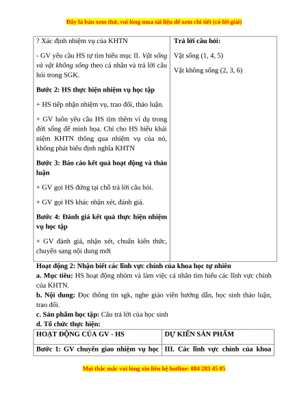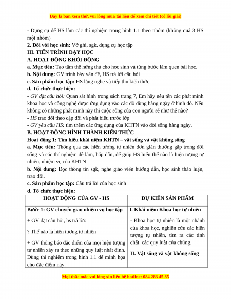Hoạt động 1: Tìm hiểu khái niệm KHTN – vật sống và vật không sống
