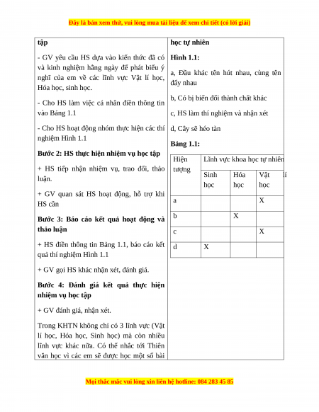 + Sắp xếp được các hiện tượng tự nhiên vào các lĩnh vực tương ứng của KHTN