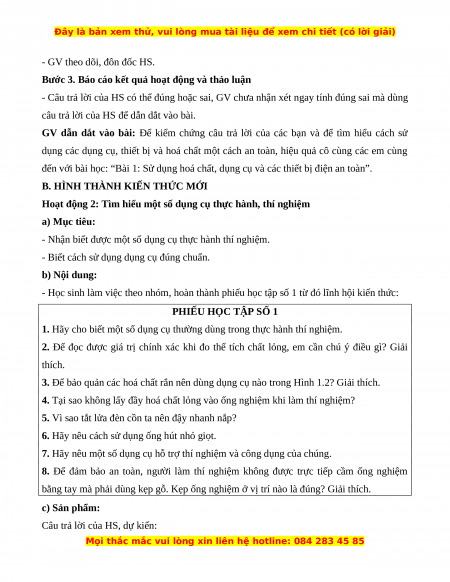 đến với bài học: “Bài 1: Sử dụng hoá chất, dụng cụ và các thiết bị điện an toàn”.