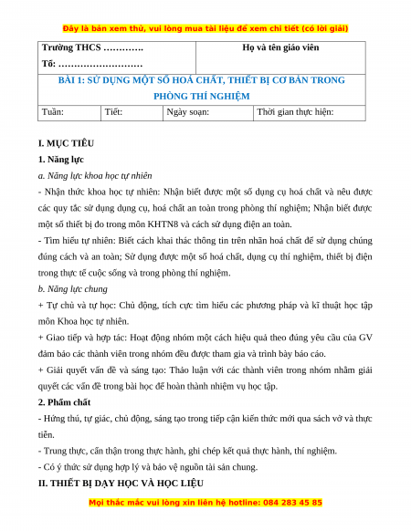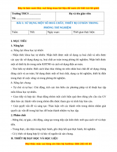 BÀI 1: SỬ DỤNG MỘT SỐ HOÁ CHẤT, THIẾT BỊ CƠ BẢN TRONG PHÒNG THÍ NGHIỆM Tuần: Tiết: Ngày soạn: Thời gian thực hiện: I. MỤC TIÊU 1. Năng lực