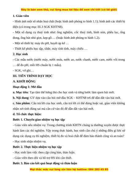 nghiệm, thiết bị đo và hoá chất đảm bảo thành công và an toàn chúng ta cùng tìm hiểu bài học hôm nay: