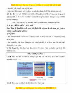 - Học sinh khai thác được thông tin trên nhãn hoá chất để sử dụng hoá chất một cách