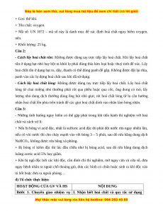+ Mã số: UN 1072 – mã số này là danh mục để xác định hoá chất nguy hiểm oxygen, nén. + Khối lượng: 25 kg. Câu 2: