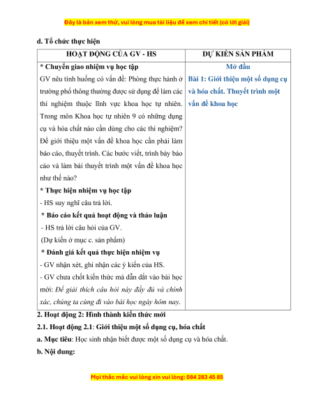 2.1. Hoạt động 2.1: Giới thiệu một số dụng cụ, hóa chất