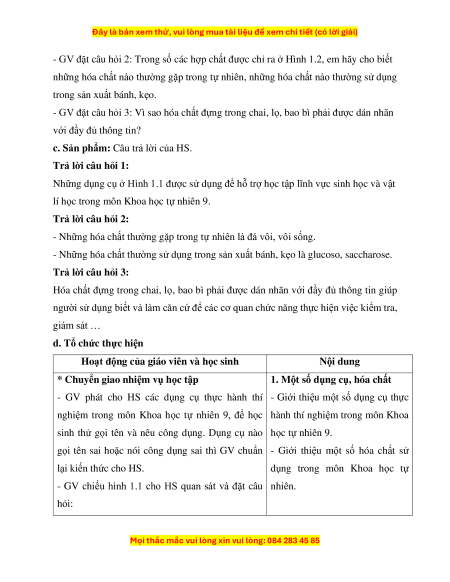 - GV giới thiệu một số hóa chất sử dụng trong môn Khoa học tự nhiên trong hình 1.2.
